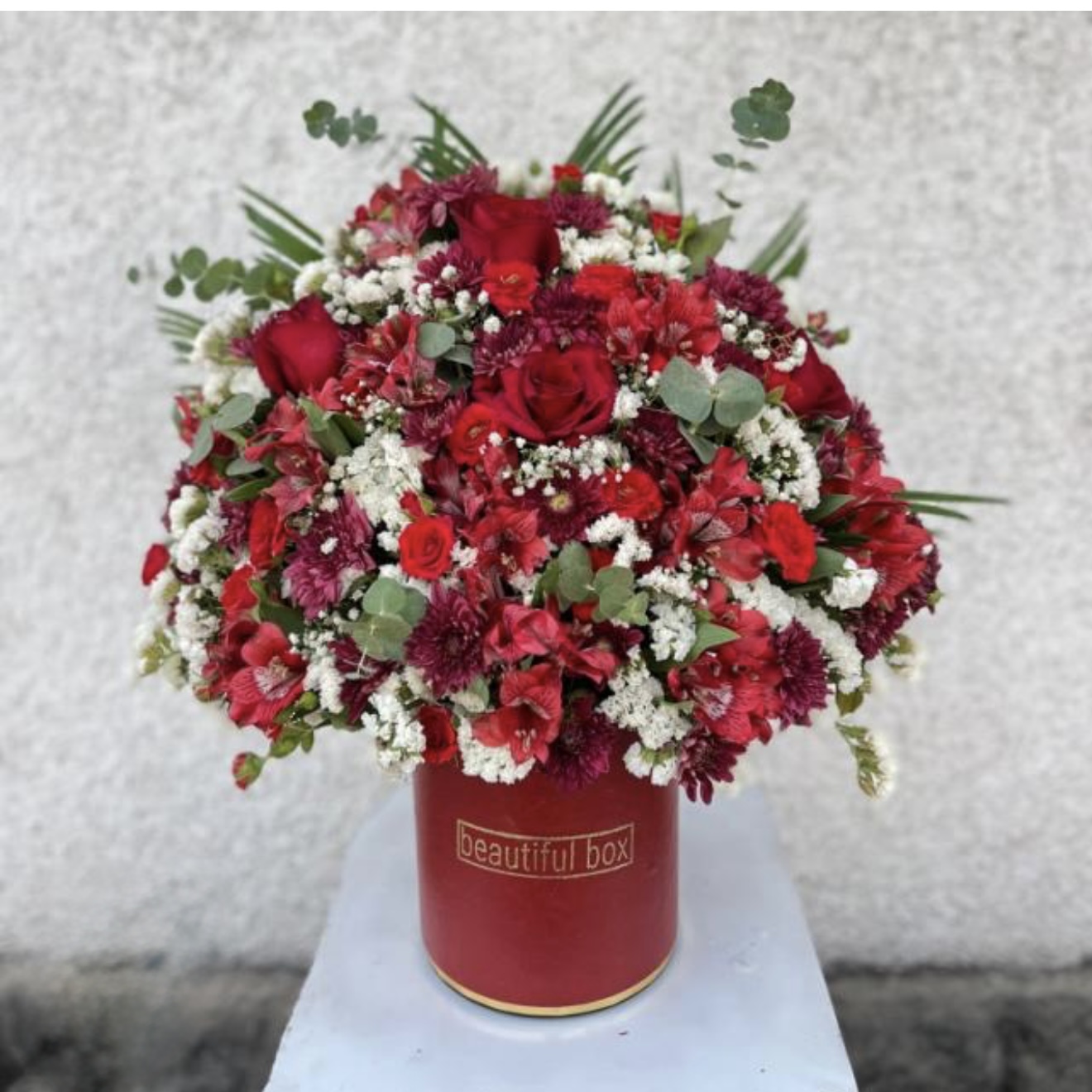 باکس گل طبیعی ترکیب رز هلندی قرمز و آلسترومریا سفید کد (۶۵)۳٬۵۰۰٬۰۰۰ 8%