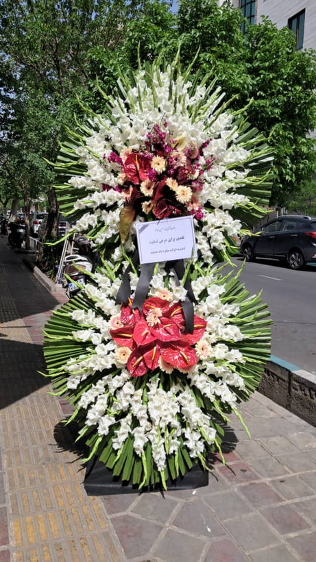 تاج گل طبیعی ترحیم و تسلیت دو طبقه گلایل و آنتریوم کد(۱٠٠۶)