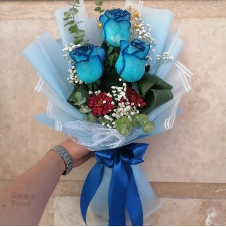 🌺دسته گل طبیعی ۳شاخه رز هلندی آبی