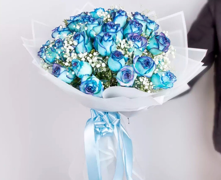 🌹🌹🌹🌹دسته گل طبیعی ۳۰ شاخه رز هلندی آبی